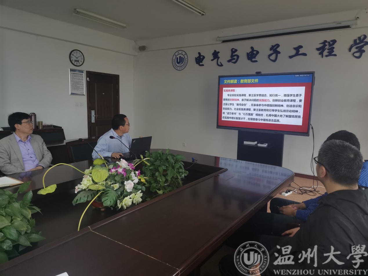 随后,系书记李晗分别对教育部、教育厅、学校的课程思政相关文件精神进行了解读,指出工学类专业课程要注重强化学生工程伦理教育,培养学生精益求精的大国工匠精神,激发学生科技报国的家国情怀和使命担当,并在课程目标设计、教学大纲修订、教材编审选用、教案课件编写等方面强化落实。系副主任施一剑补充介绍了学院课程思政的具体工作安排,要求每位教师准备课程思政案例,为院级课程思政大讨论做好充分准备。
