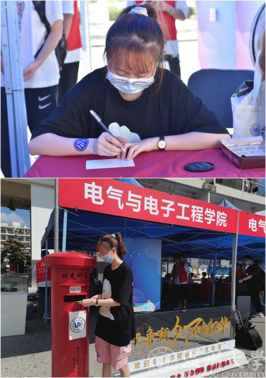 每一段旅程,都是人生中最特别的存在!十几年的寒窗苦读,终于迎来了梦寐以求的大学时光,相信每位新生都对接下来的大学生活无限憧憬。今年,电气电子学院为新生特别制作了一个“时光邮筒”,还准备了温大手绘明信片。在大学时光即将启程的那一刻,新生们把对自己四年的期望和寄语,写在温大手绘明信片上,投递到“时光邮筒”里,待到四年后的某一天,当他们再打开这封信的时候,希望每个人都能够满怀微笑、饱含深情的对自己说“谢谢这四年,我来过,我无悔!”