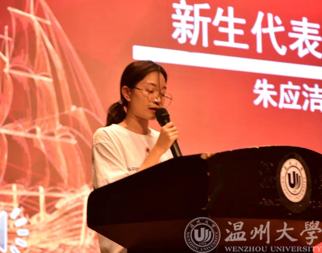 在这次典礼过程中,学院还特别安排了2019级研究生班长王京京同学作为老生代表进行发言,王京京学长结合自己的学习经历,向与会的新生同学分享了宝贵的学习经验与生活技巧,有利于新生更快地适应新的学习生活。21电信1班的朱应洁同学此次作为新生代表发言,她在发言中对既往帮助过自己的老师们表达了感谢,同时对未来美好的温大生活表示了期待,希望全体本科新生都可以在温大的培养下找到自己的人生方向。
