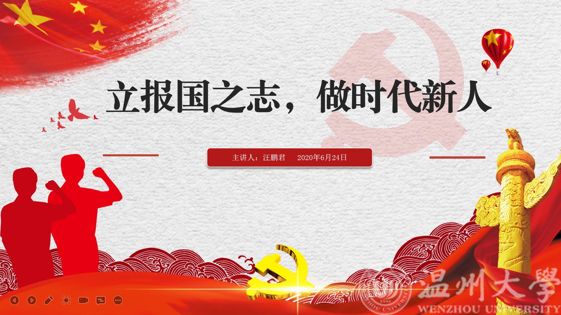 2020年6月24日,欧美无码 院长以“立报国之志,做时代新人”为主题,为全院学生党员展开了一堂生动的思政课。