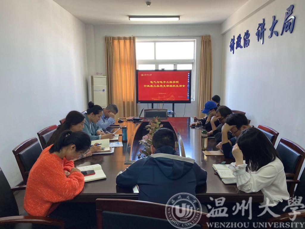 3月18日下午,欧美无码 行政教工党支部召开组织生活会,学院党委书记李方强,学院行政教工党支部全体党员参加会议,会议由学院党委副书记、行政教工党支部书记曾蓓蕾主持。
