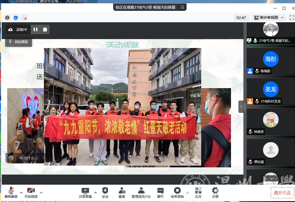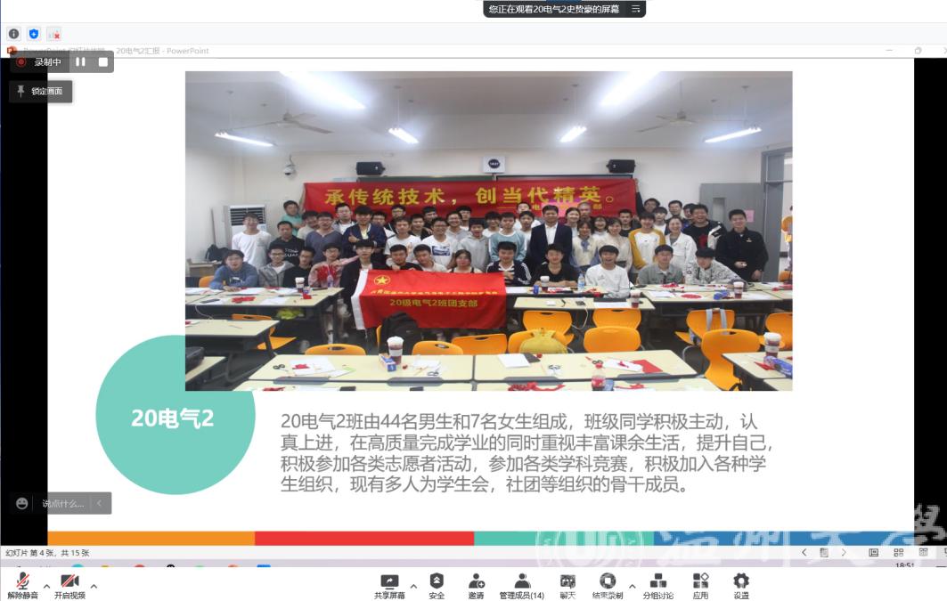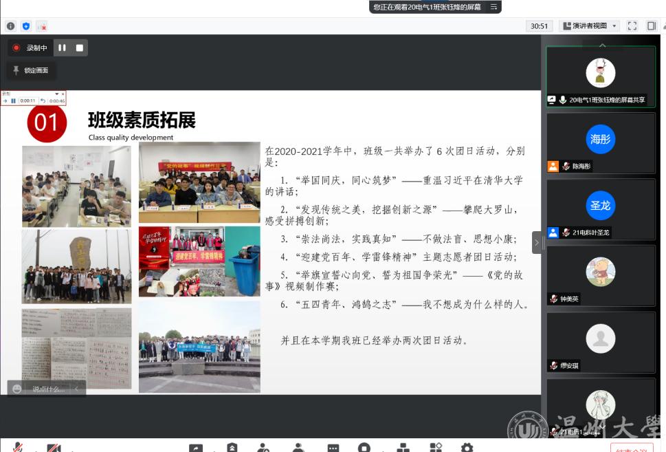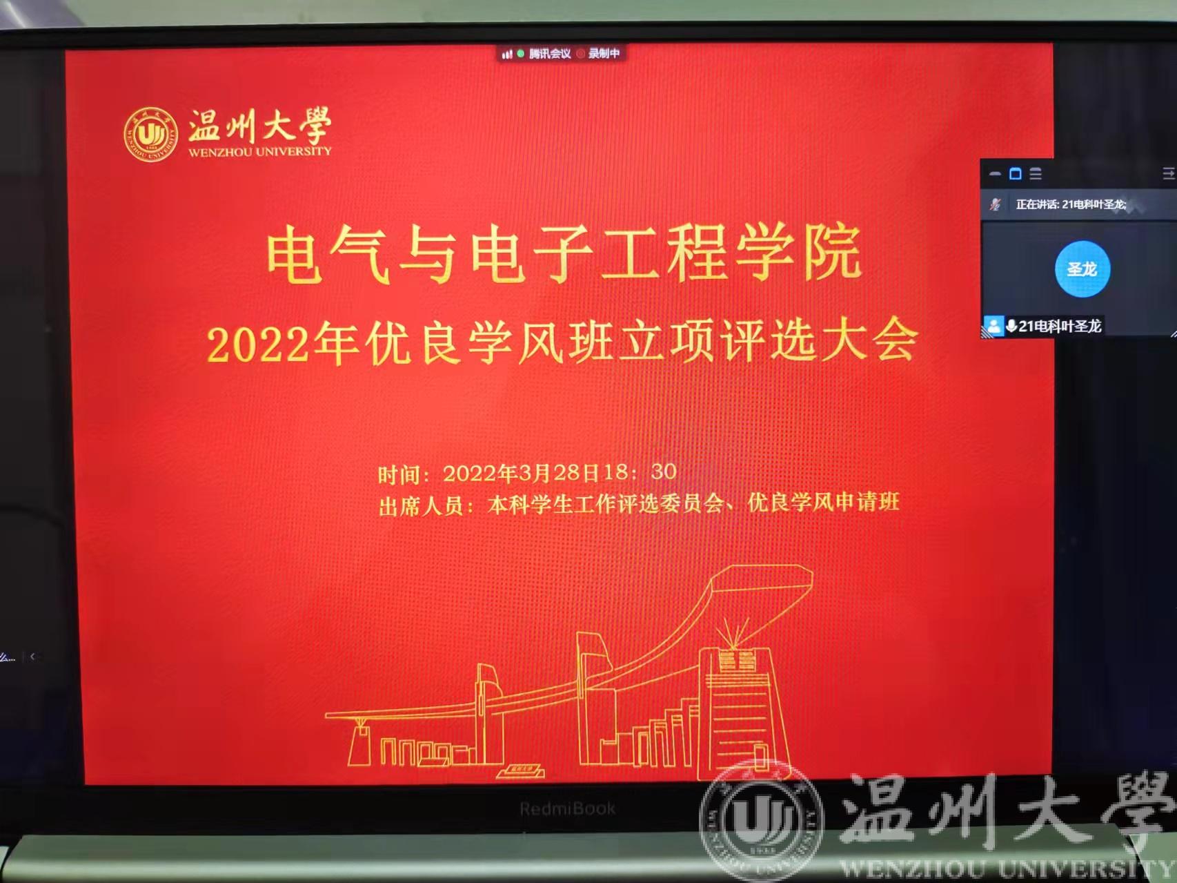 为进一步加强校风学风建设,树立优良学风,加大优秀班级的示范作用,欧美无码 于2022年3月28日晚在线上举办“优良学风班”立项申请评选活动。学院本科生评选委员会委员以及申请立项的8个班级出席了本次活动。