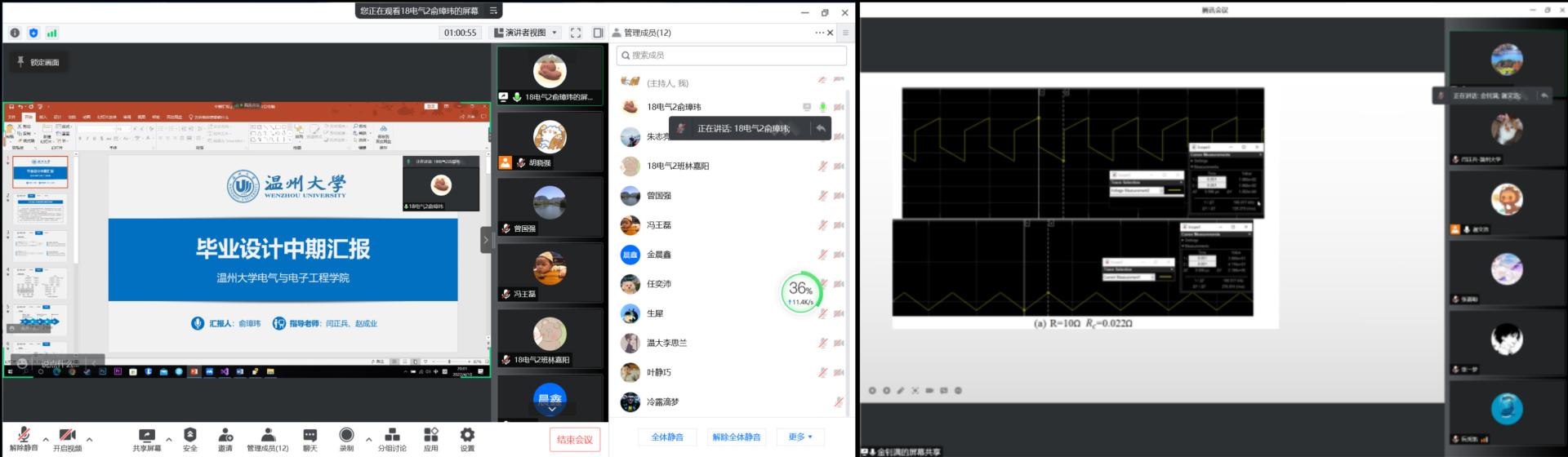 为加强对毕业设计的指导和管理,及时了解毕业设计进度和存在的问题,增强毕业设计指导的针对性和有效性,提高毕业生毕业设计水平。4月9日-4月12日,电气工程系对全体 2022届电气工程及其自动化专业本科生毕业设计(论文)进行中期检查,95 名同学分为8 个小组、线上与线下相结合进行中期汇报,主要汇报毕业设计任务和目前进度。