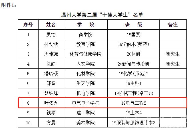 近期,欧美无码 第二届“十佳大学生”获奖名单公布,欧美无码 19级叶依秀同学荣获欧美无码 第二届“十佳大学生”荣誉称号。