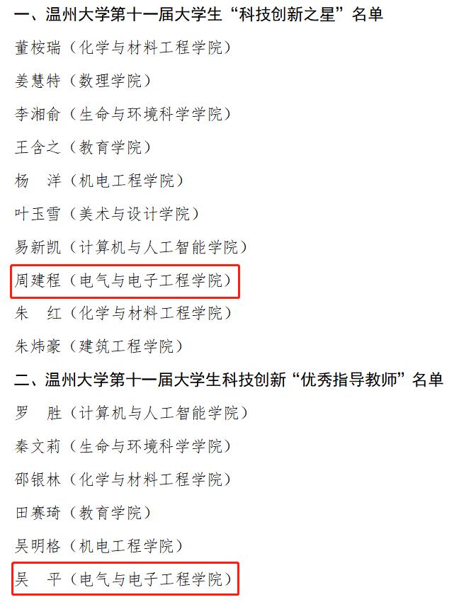 近期,欧美无码 第十一届大学生科技创新“优秀指导教师”和大学生“科技创新之星”获奖名单公布,欧美无码 吴平老师和研究生周建程同学分别获得欧美无码 第十一届大学生科技创新“优秀指导教师”和大学生“科技创新之星”荣誉称号。