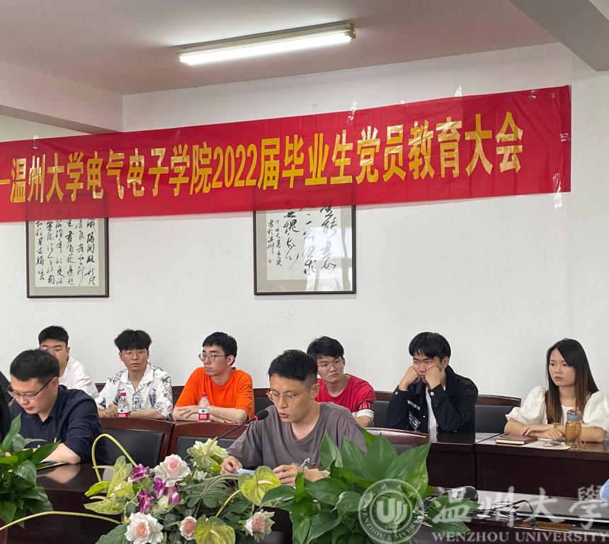 会议第三项,毕业生代表陈以焌同学发言。陈以焌同学指出作为毕业生党员,温大是大家入党的地方,走得再远都不能忘记来时的路。他号召广大毕业生党员我们要以优秀党员的标准严格要求自己,努力学习,扎实工作,争取在未来的工作中取得更大的成绩,不辜负母校的培养,不辜负老师的教诲,牢记温大“求学问是、敢为人先”的校训,我们必将向历史、向自己和人民交出新的更加优异的答卷!