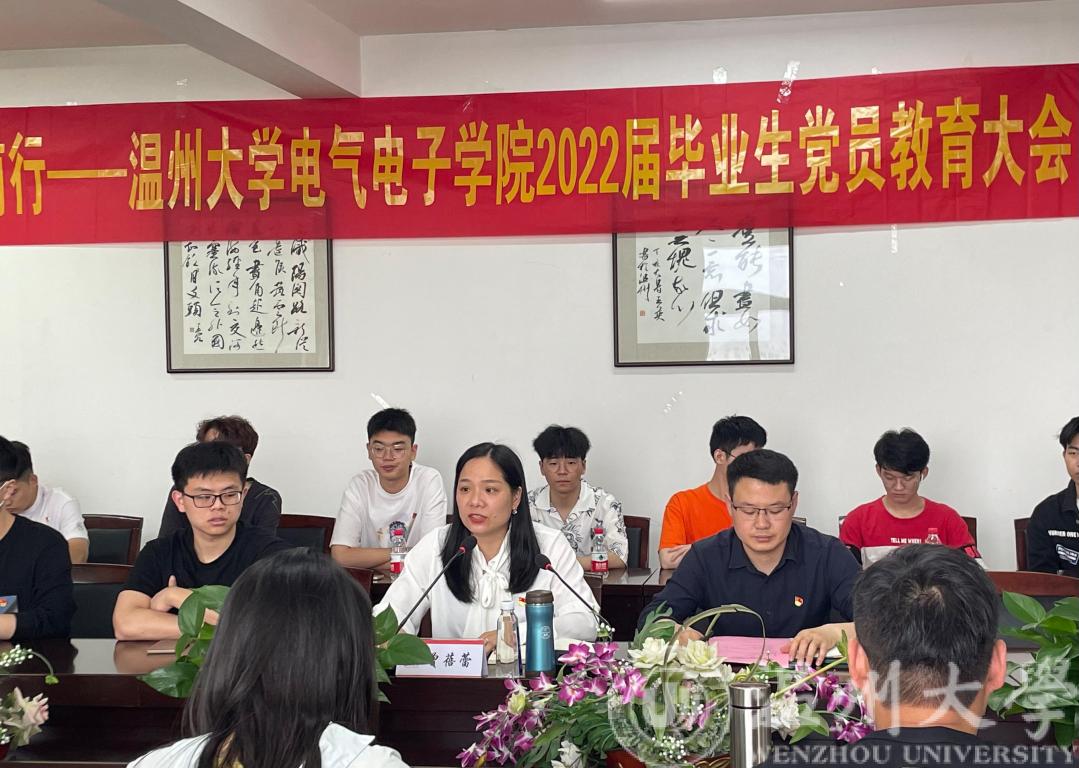 此次大会在庄严的国歌声中拉开帷幕。紧接着,由学院党委副书记曾蓓蕾致辞。曾书记指出,“在座的同志们,你们与普通的毕业生相比,多了另一重身份,那就是中国共产党党员。”会议上曾书记还送给全体毕业生党员三句话:一是希望大家坚定自己的理想信念,不忘入党初心,始终把党摆在心头正中,始终做到爱党、信党、护党、听党话、跟党走;二是希望大家未来在各行各业要敢于担当,发挥党员本色,秉持“求学问是,敢为人先”的温大精神,立足奉献岗位,勇于担当作为,保持干事创业、开拓进取的精气神;三是祝福大家毕业快乐,希望大家能够常回学院看看。最后,曾书记还对全体毕业生党员表达了美好的祝愿。
