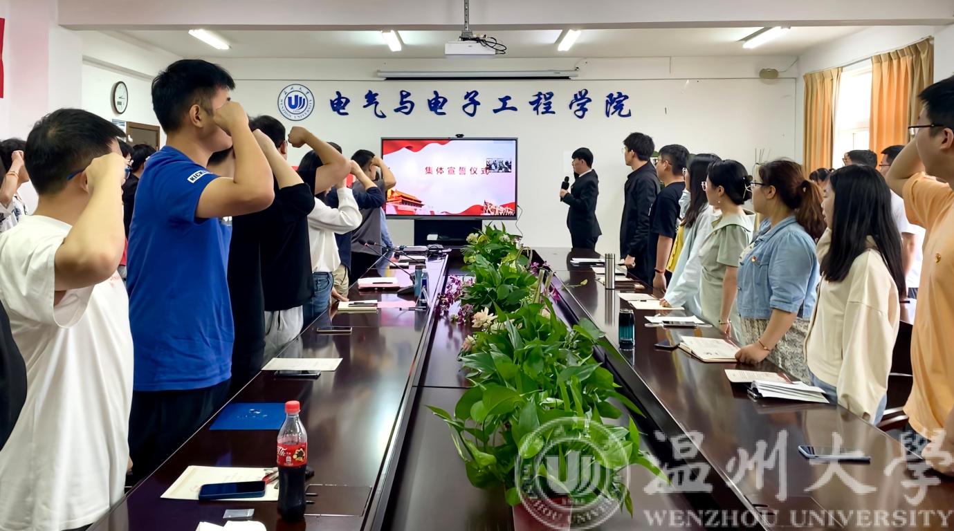 研究生党员代表王京京同学带领与会全体毕业生党员进行宣誓仪式,重温入党誓词。