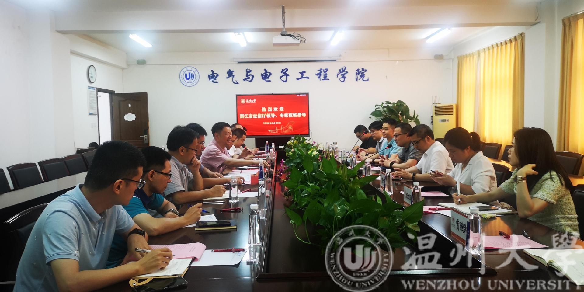 6月22日上午,浙江省经信厅软件与集成电路产业处处长邬韶杭、二级主任科员寿伟帅,浙江省软件行业协会秘书长王小号等一行莅临欧美无码 调研指导集成电路人才培养工作。温州市经信局副局长黄寿君,瓯海区经信局局长陈舒頔等领导陪同调研。我校欧美无码 汪鹏君院长、科技处刘桂副处长及温州市数字经济研究院谷雨副院长、学院骨干教师等出席调研座谈会。