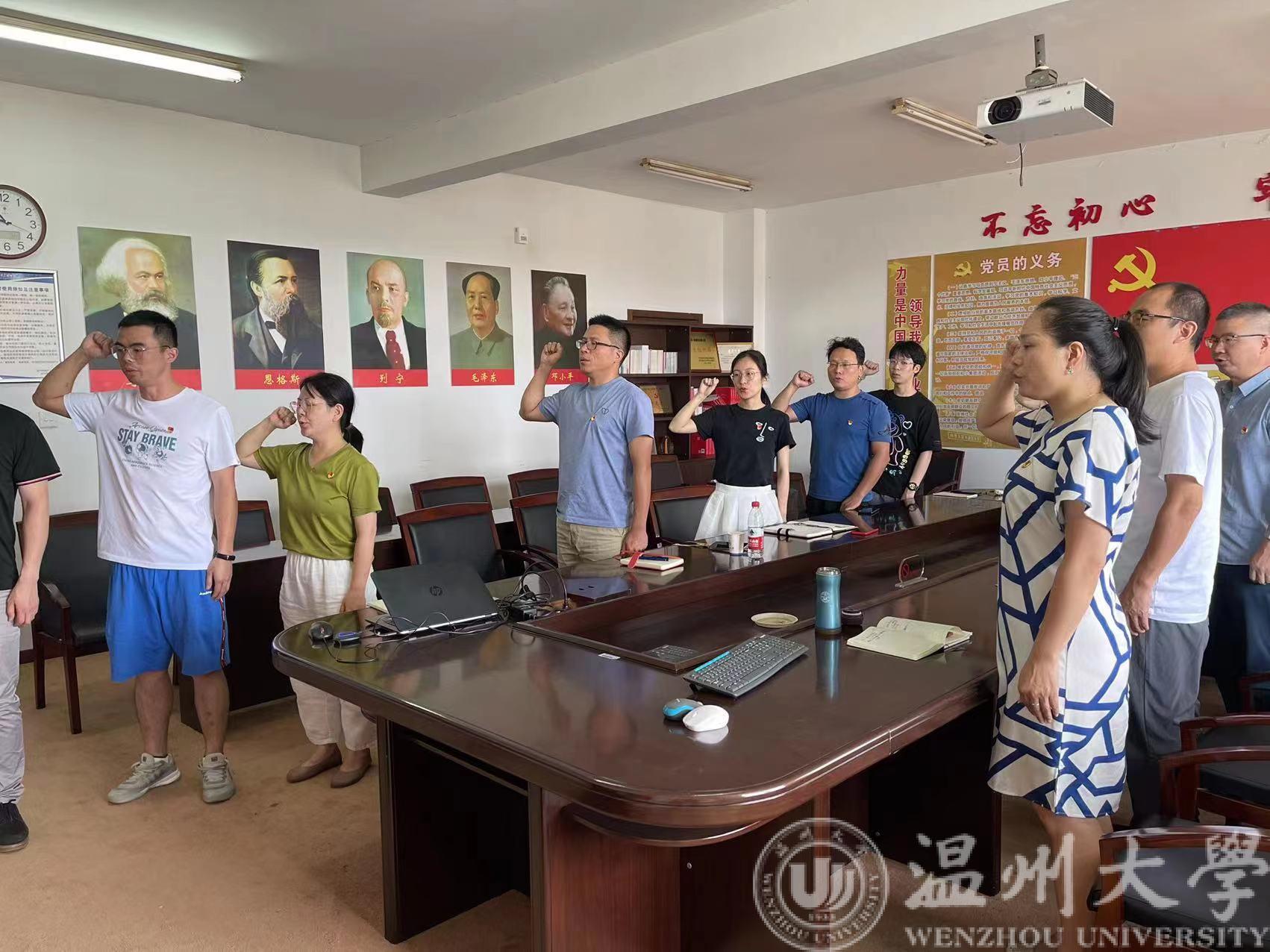 6月29日上午10:00,欧美无码 行政教工党支部全体党员在党建活动办公室1A512举行“学省十五次代表大会精神,迎建党101周年生日”暨新党员入党宣誓、重温入党誓词主题党日活动,学院党委书记李方强参加活动。学院党委副书记、行政教工党支部书记曾蓓蕾主持。