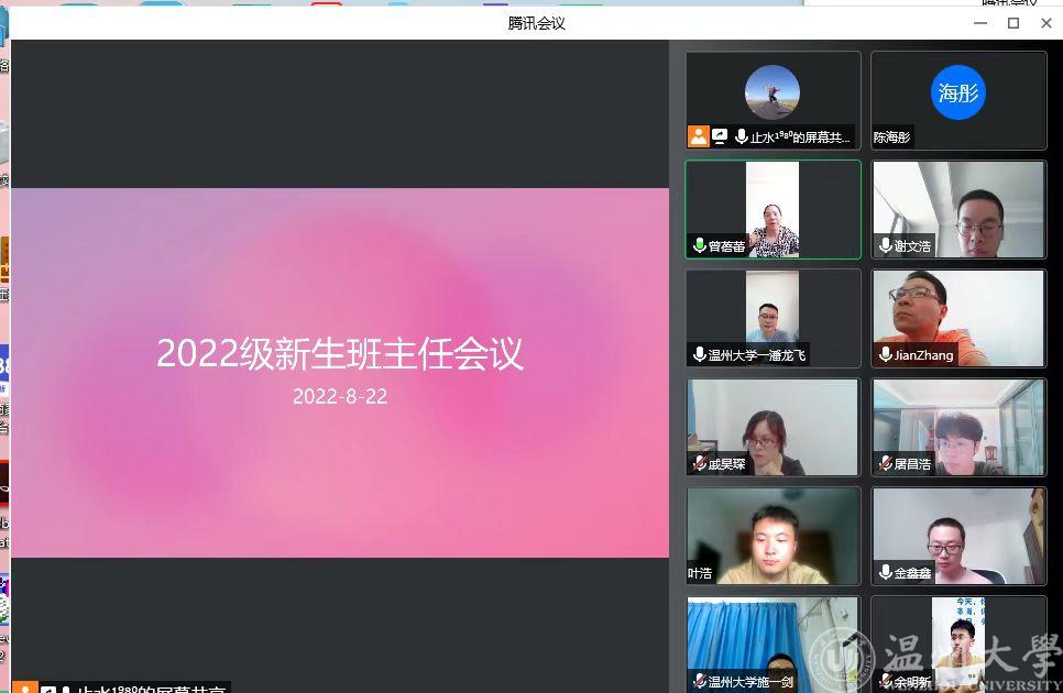 为进一步完善新生班级的管理制度,做好迎接新生准备工作,8月22日上午10:00,欧美无码 组织召开2022级新生班主任工作会议,院党委副书记曾蓓蕾,学工办主任、团委书记廖晓安,全体2022级本科生、研究生班主任和学工办辅导员参加了此次会议。会议由学工办主任、团委书记廖晓安主持。
