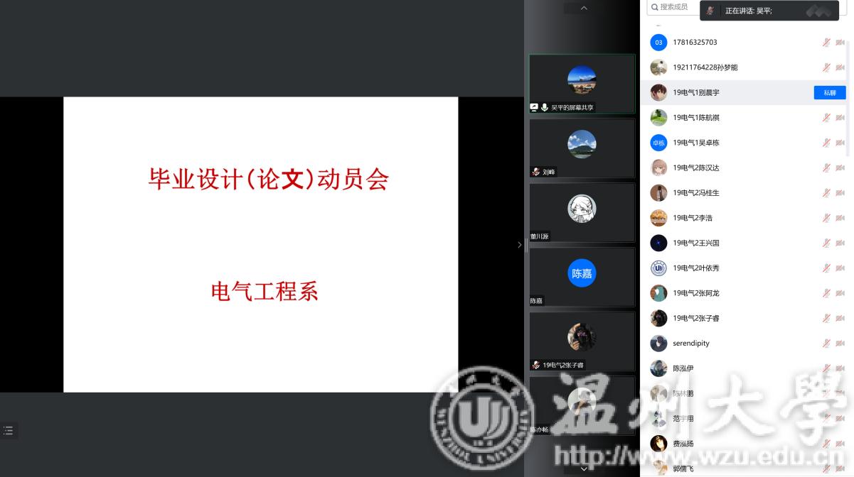 为进一步做好2023届本科毕业设计(论文)工作,不断提升本科毕业设计(论文)的质量,2022年9月25日上午9:00,电气系通过腾讯会议直播的形式召开2023届本科毕业设计(论文)动员会。