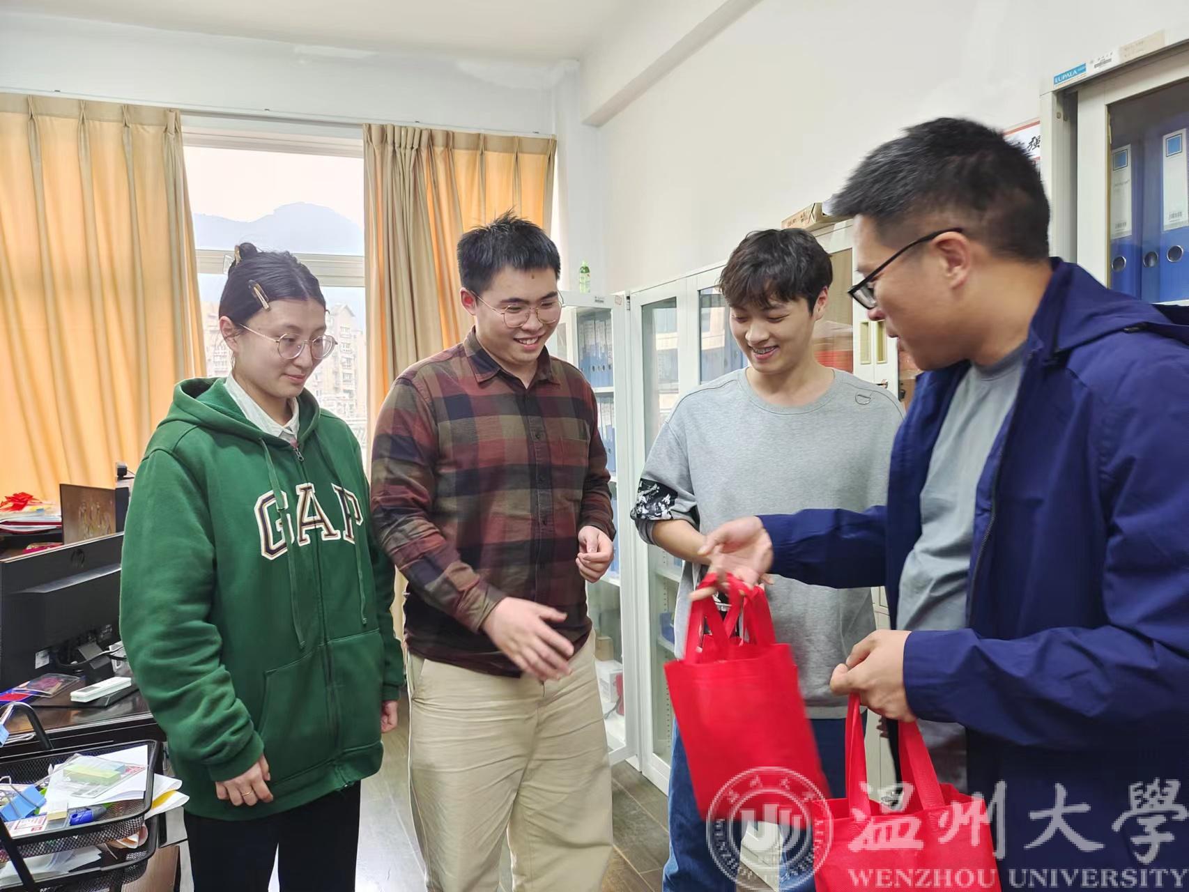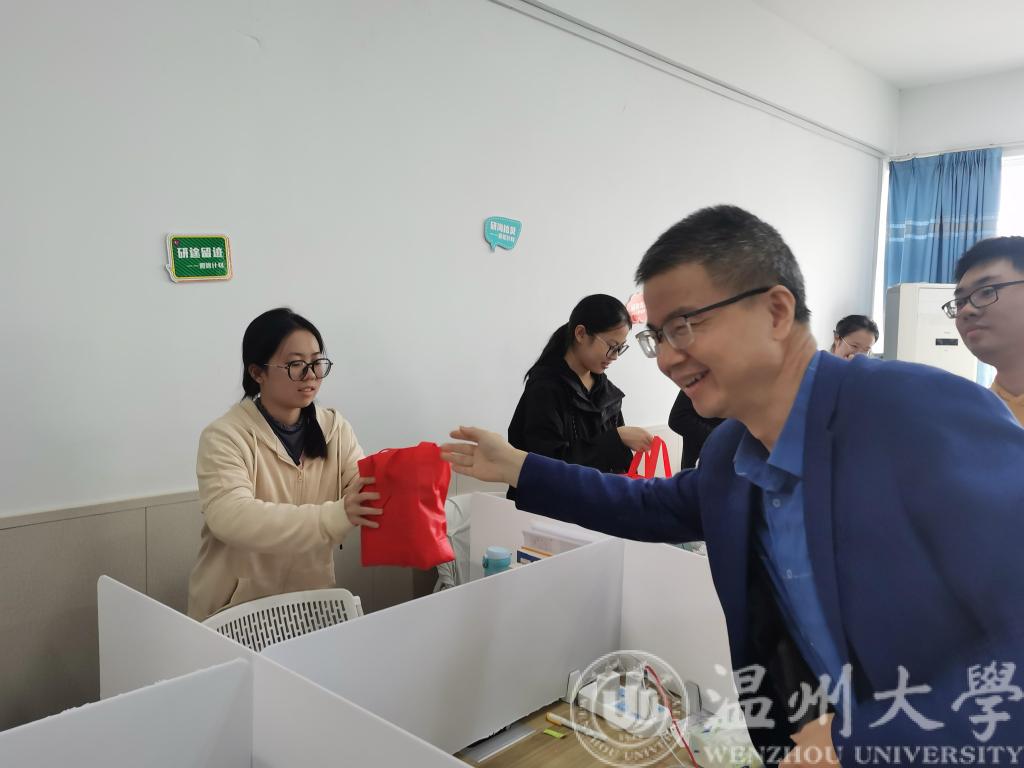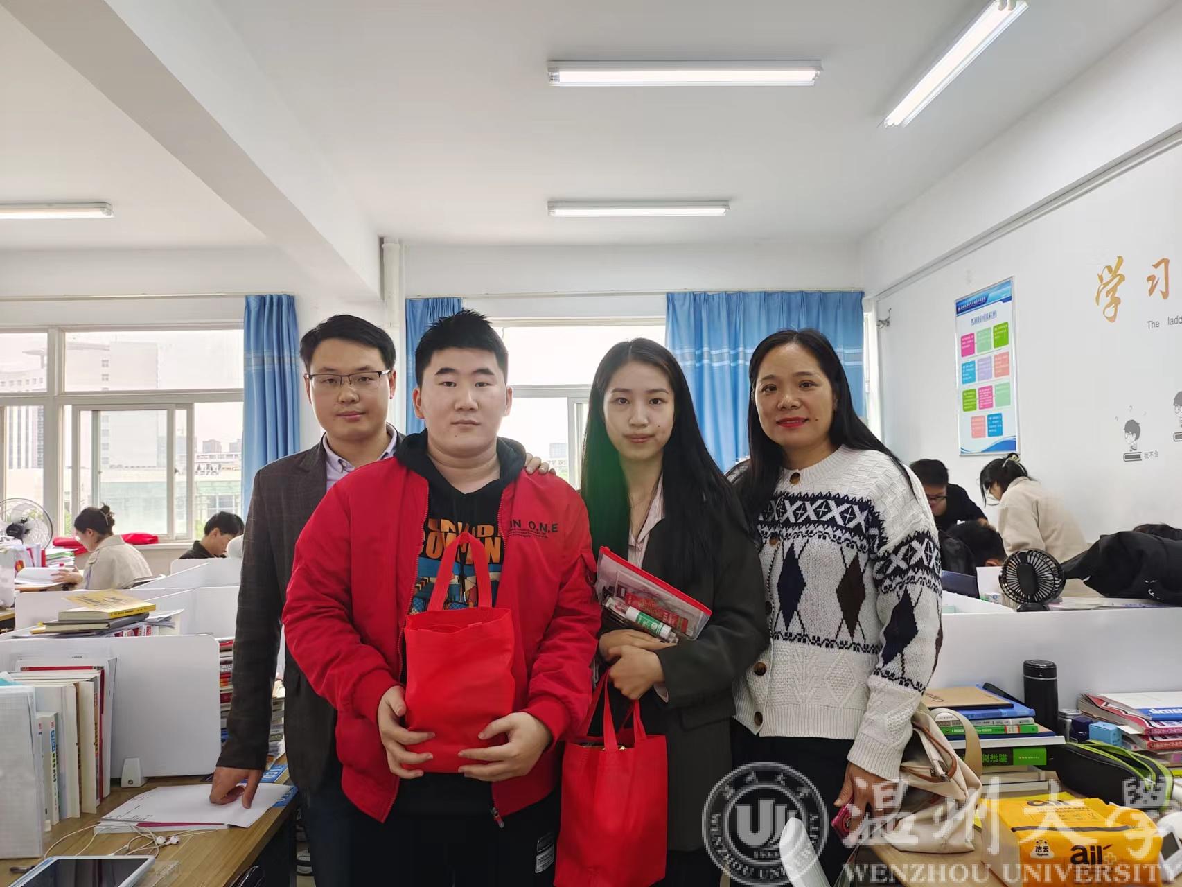 11月24日下午14:00,学院院长汪鹏君、党委书记李方强、党委副书记曾蓓蕾及学工办辅导员来到学院316和318考研自习室,为正在备考的考研学子送上学院精心准备的“考研大礼包”。