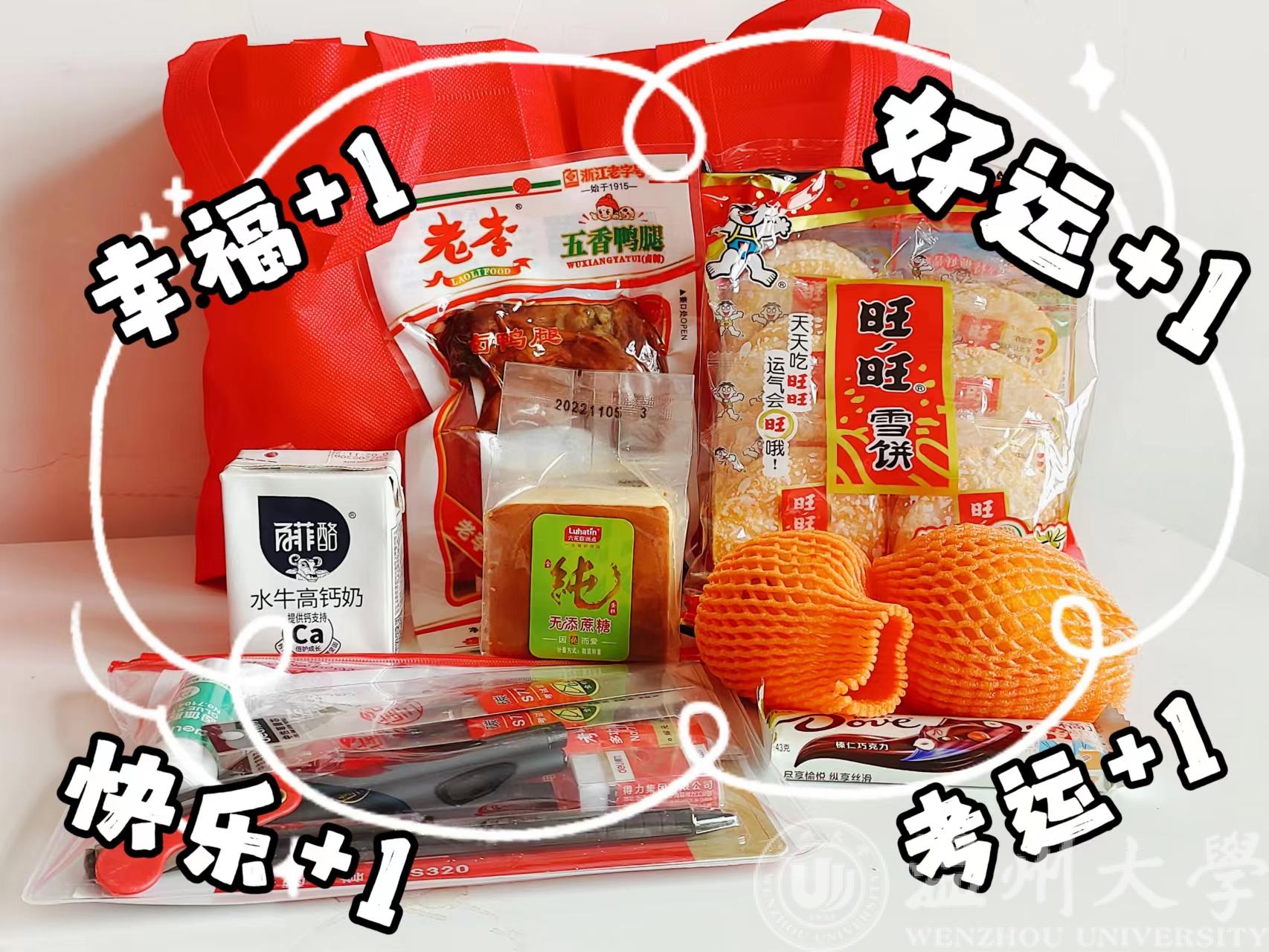 2022年11月24日,距离2023年全国硕士研究生招生考试还有30天,考研也进入紧张的冲刺阶段。为鼓舞考研学生信心,增强考试信心,欧美无码 开展2023届考研慰问活动,为广大备战考研学子送上“考研大礼包”,为他们鼓舞打气,加油助力。“考研大礼包”含有考试必备的涂卡笔、橡皮、小刀、胶棒等文具用品,还有寓意“糕”中的蛋糕,大“鸡”大利的鸡腿,考运“旺旺”的旺旺雪饼,“橙”功上岸的橙子,思路纵享“丝滑”的德芙巧克力等。