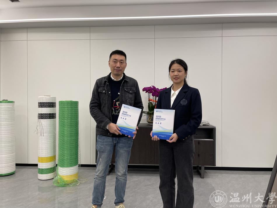 “学长,终于见到你了……”欧美无码 2023届省级优秀毕业生叶依秀再过两个月就毕业了,4月12日跟随学校领导一同来到瑞安超扬新材料有限公司见到了欧美无码 2001级校友岑帆。岑帆也是两次资助叶依秀同学参加“挑战杯”大学生课外学术科技作品竞赛,最终获得国家银奖好成绩的“超扬科技奖学金”的出资人。