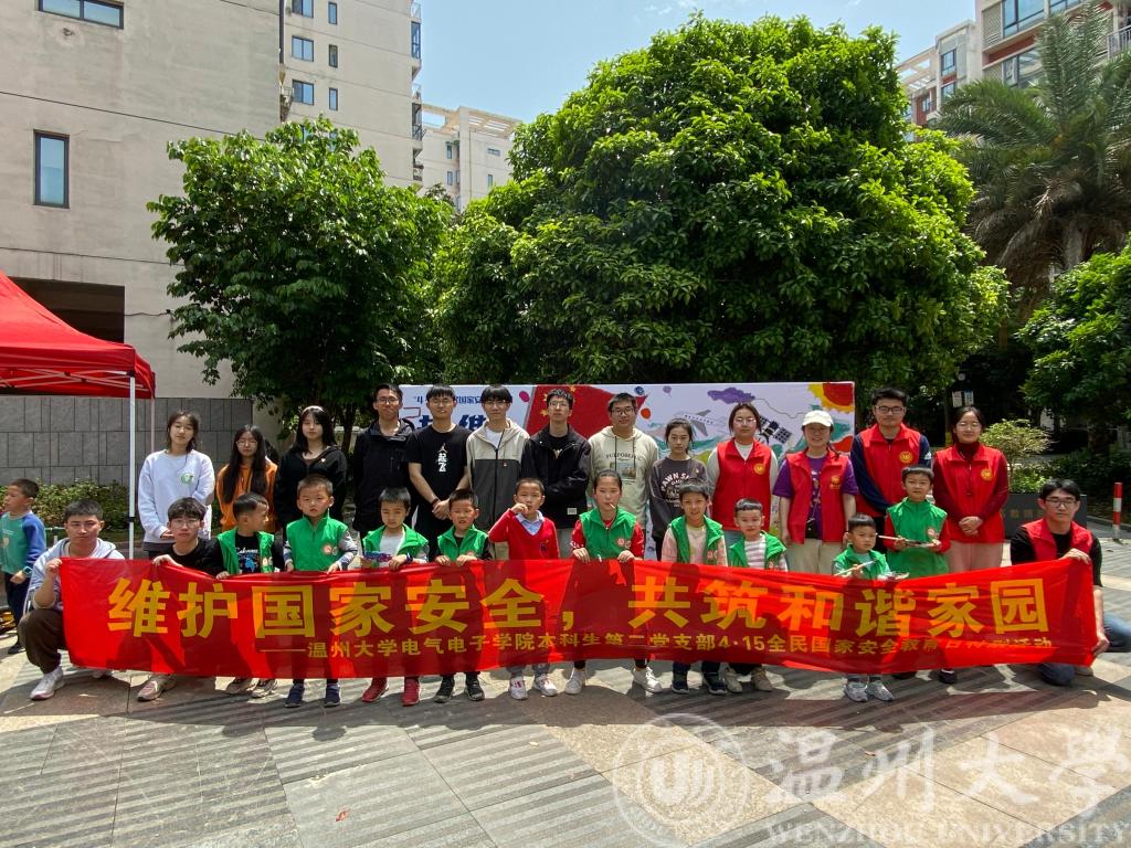 本科生第二党支部党员前往高教博园社区开展国家安全宣传教育活动,学生党员和小朋友们“大手牵小手”,用涂满颜色的画布学习基本的国家安全知识。