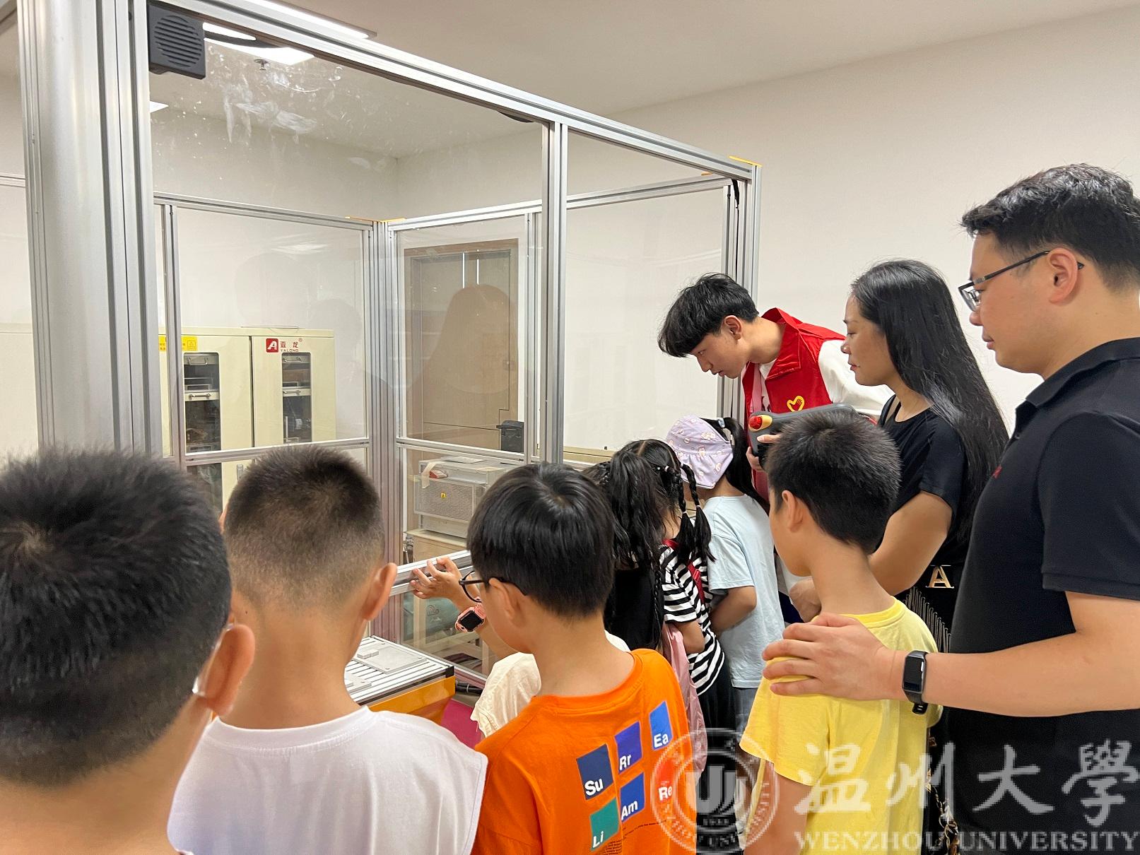 在实验室,云智立实践队利用先进的工业设备,向孩子们普及了智能制造的基本知识和应用领域,介绍了智能制造在工业和社会各个领域的应用案例和发展前景,通过队员们的讲解和现场观看,孩子们操作智能设备,加深对智能制造的理解和实践,科研的种子在心中生根发芽。