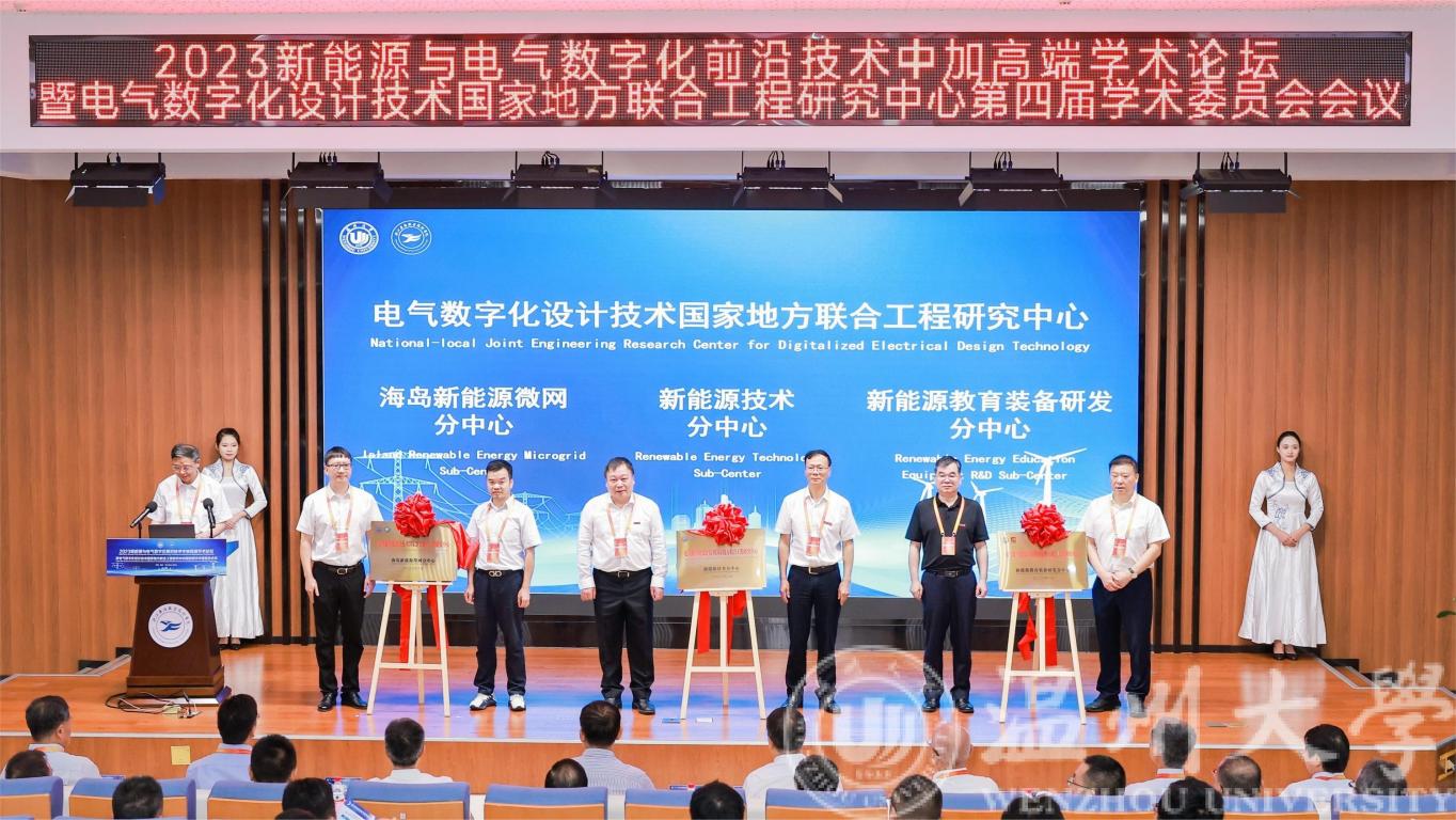 会议上宣布了电气数字化设计技术国家地方联合工程研究中心第四届学术委员会名单,还为电气数字化设计技术国家地方联合工程研究中心和落户在安防学院的新能源技术分中心、落户在国网平阳中心的海岛新能源微网分中心、落户在亚龙智能装备集团股份有限公司的新能源教育装备研发分中心等三个分中心揭牌。当天,由安防学院、欧美无码 联合新能源龙头企业创设的新能源行业产教融合共同体举行了启动仪式。