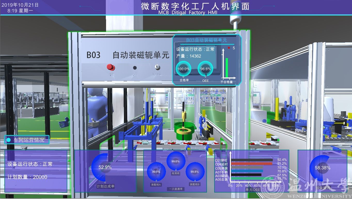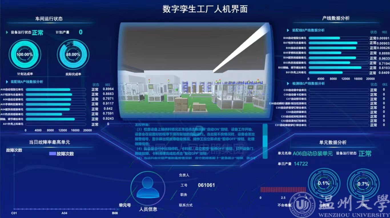 舒亮提到的“数字孪生”技术,是指针对物理世界中的物体,通过数字化手段来构建数字世界中一模一样的虚拟现实,以实现对物理实体的了解、分析和优化。天正公司方面点赞“温大智慧”:“数字化工厂让整个系统实现了自动化的装配、检测、包装和信息化管理,让我们拥有了无人化工厂和数字化工厂。”
