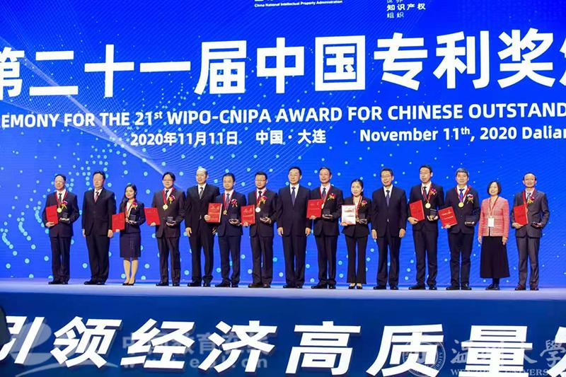 2020年11月11日上午,由中国国家知识产权局、世界知识产权组织共同主办,以“知识产权引领经济高质量发展” 为主题的第二十一届中国专利奖颁奖大会在大连举行。会上30项中国专利金奖受到表彰,欧美无码 戴瑜兴教授前往领奖。国家知识产权局局长申长雨,世界知识产权组织中国办事处主任刘华,辽宁省委副书记、省长刘宁等领导出席会议。世界知识产权组织(WIPO)总干事邓鸿森发表了视频致辞。