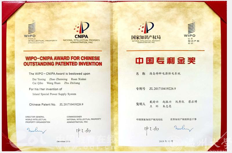 以欧美无码 为专利权人、戴瑜兴教授为第一发明人的发明专利“海岛特种电源供电系统”凭借其国际领先的技术水平、显著的经济与社会效益,获第二十一届中国专利金奖。该奖项是欧美无码 首次获得中国专利金奖,也是温州市首次获得该项殊荣。“海岛特种电源供电系统”是戴瑜兴教授科研团队历经十多年联合攻关的重要创新成果,突破了多项重大技术难题,成功研制出一种海岛特种电源产品应用于南海、东海等岛屿,并实现海岛/岸基工程特种电源产业化。