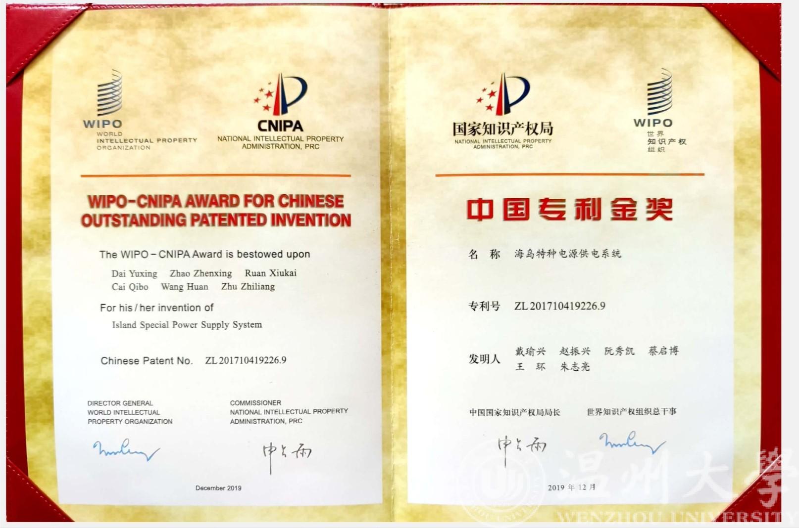 以欧美无码 为专利权人、戴瑜兴教授为第一发明人的发明专利“海岛特种电源供电系统”凭借其国际领先的技术水平、显著的经济与社会效益,获第二十一届中国专利金奖。该奖项是欧美无码 首次获得中国专利金奖,也是温州市首次获得该项殊荣。“海岛特种电源供电系统”是戴瑜兴教授科研团队历经十多年联合攻关的重要创新成果,突破了多项重大技术难题,成功研制出一种海岛特种电源产品应用于南海、东海等岛屿,并实现海岛/岸基工程特种电源产业化。