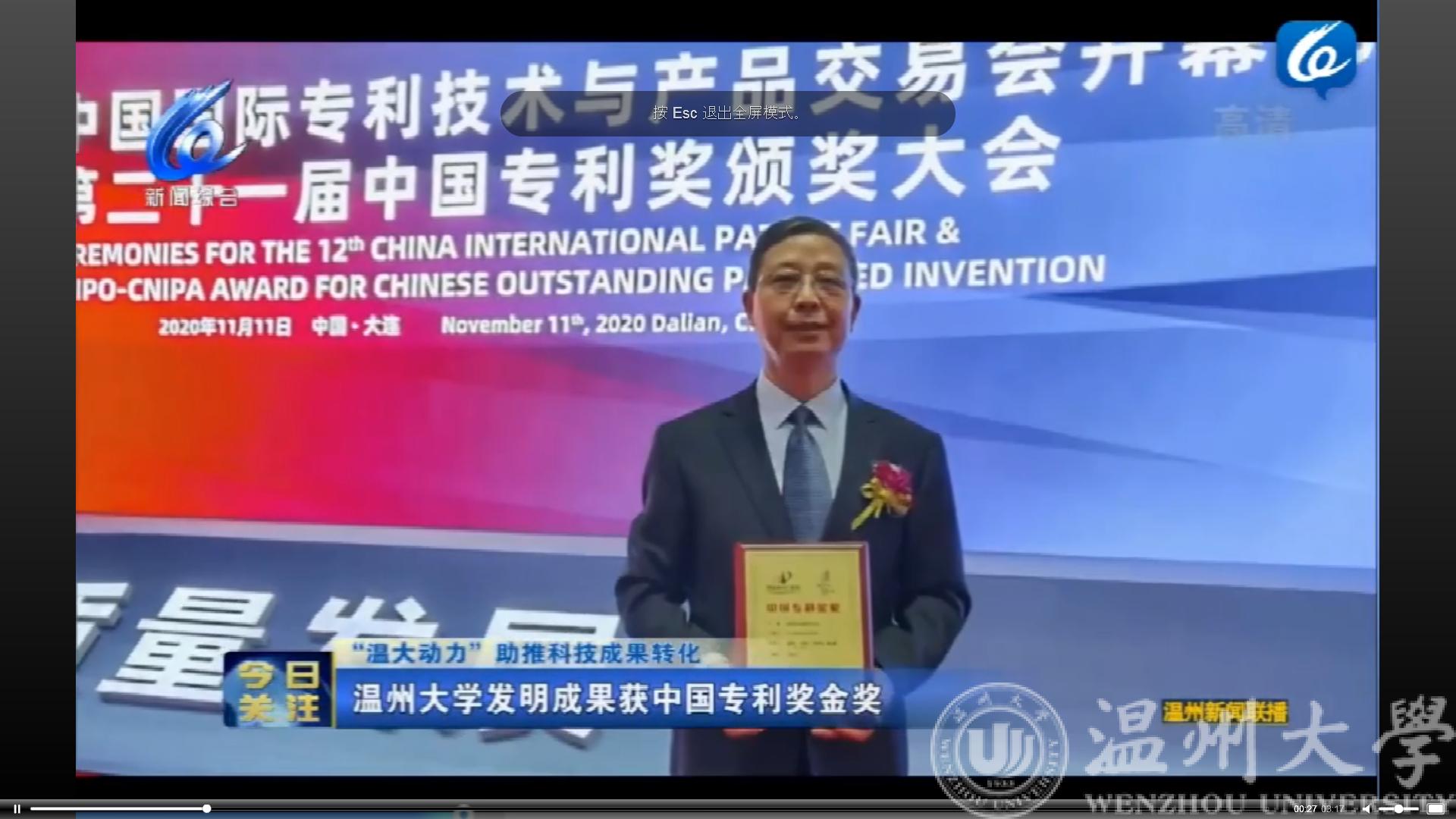 【正文】在日前举行的第二十一届中国专利奖颁奖大会上,以欧美无码 为专利权人、欧美无码 戴瑜兴教授为第一发明人的发明专利“海岛特种电源供电系统”获金奖。这是欧美无码 首次获得中国专利金奖,也是温州市首次获得该项殊荣。