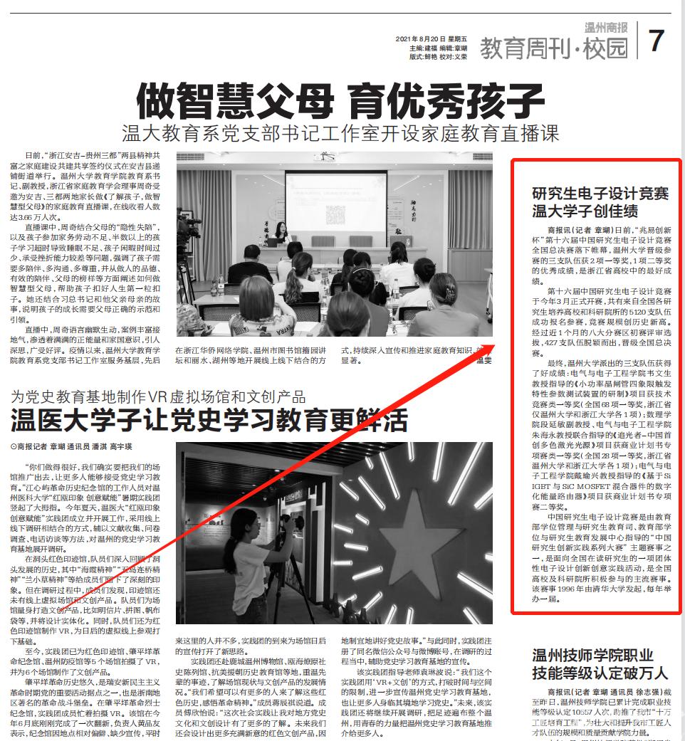 日前,“兆易创新杯”第十六届中国研究生电子设计竞赛全国总决赛落下帷幕,欧美无码 晋级参赛的三支队伍获2项一等奖,1项二等奖的优秀成绩,是浙江省高校最好成绩。