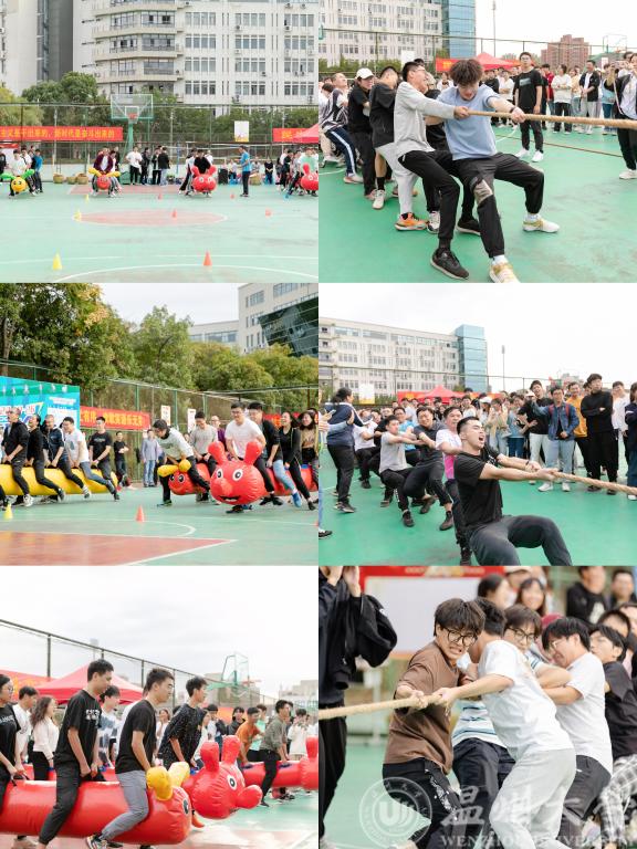 劳动项目后,还有激烈的毛毛虫竞赛和师生大拔河。老师们骑着憨态可掬的毛毛虫,喊着口号齐心协力地向前方跑去,为他们加油助威的呐喊一声高过一声,此刻的他们,意气风发、神采飞扬。随着哨声响起,拔河比赛展开了激烈的对决,胜负难分的时刻,大家毫不退却,斗志昂扬,一旁观赛的老师们纷纷为他们加油呐喊。一时间赛场上口号声、呐喊声、鼓掌声、喝彩声,声声不绝于耳,灿烂的笑容绽放在每一个人脸上。