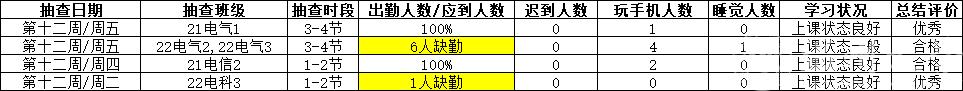 2023年5月8日至5月12日,学院学纪就业部对本院5个班次学生上课情况进行抽查。抽查情况反映如下: