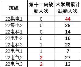 2022级上周早晚自习及课堂缺勤情况如下: