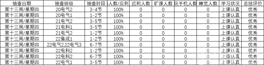 2023年5月15日至5月19日,学院学纪就业部对本院20个班次学生上课情况进行抽查。抽查情况反映如下: