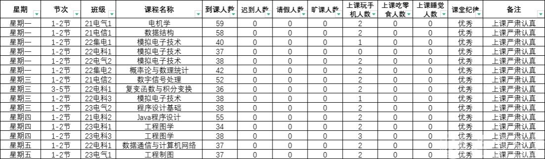 2023年11月27日至12月3日(十二周),学校对本院学风检查情况反映如下: