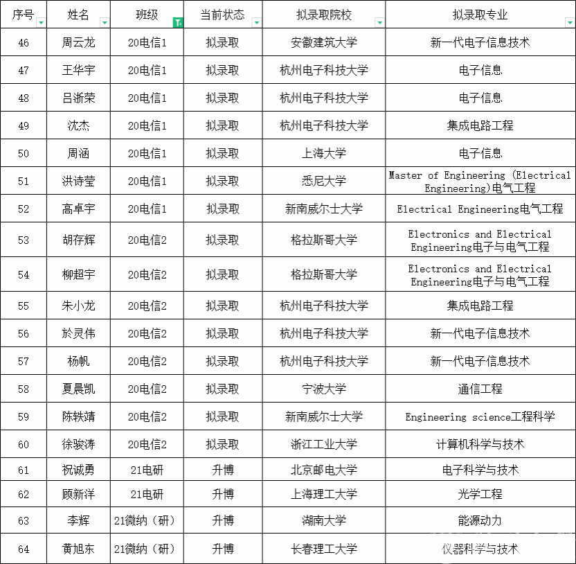 根据《欧美无码 “聚创奖学金”评定办法》文件精神,结合欧美无码 实际,学院将本年度考取硕士研究生、博士研究生及出国留学的64名同学直接评定为第五届“聚创奖学金”升学奖获得者。现将名单予以公示,请同学们核对录取的院校、专业以及类型,有误请在下方收集表填写中反馈。公示三个工作日,如有异议请于公示期内与学工办联系。