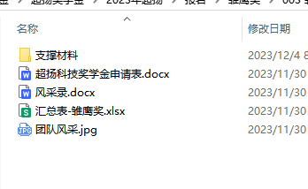 整理汇总打成压缩包,压缩包和邮箱主题命名“本科生/研究生+飞扬奖/雏鹰奖+项目名称”,于11月25日下午16:30前发至团委学生会科创部的邮箱:[email protected]