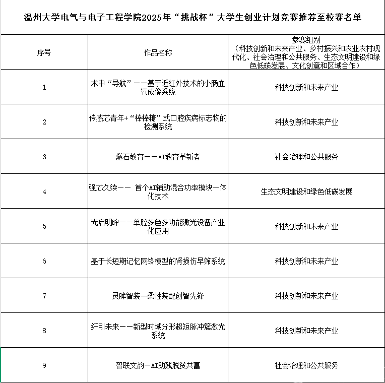 为深入学习贯彻习近平新时代中国特色社会主义思想,贯彻落实国家双创工作部署,进一步聚焦为党育人功能,引导和激励大学生通过开展广泛的社会实践、深刻的社会观察,不断增强对国情社情的了解,将所学知识与经济社会发展紧密结合,提高创新创业意识,提升社会化能力,欧美无码 于2025年11月5日举办了第十三届“挑战杯”大学生创业计划竞赛初赛。经选手汇报和答辩、专家评审,现将拟推荐队伍公示如下,最终结果以校团委评审为准。