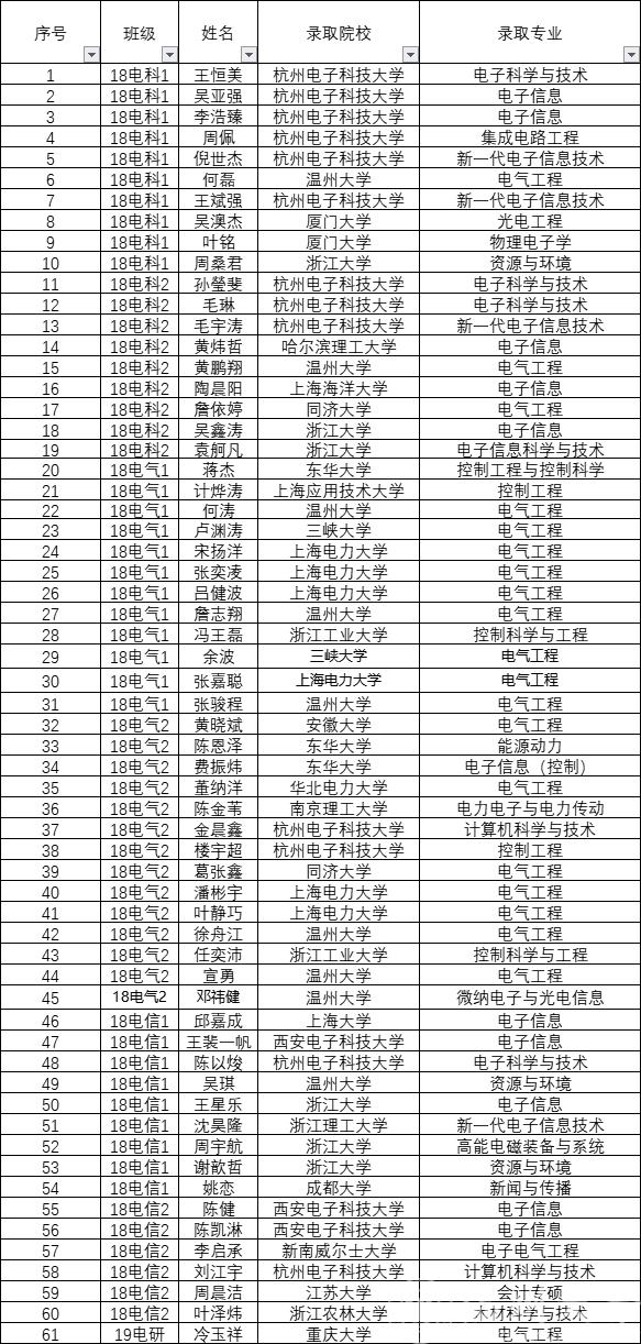 根据《欧美无码 “聚创奖学金”评定办法》文件精神,结合欧美无码 实际,学院将本年度考取硕士研究生、博士研究生及出国留学的61名同学直接评定为第三届“聚创奖学金”升学奖获得者,现将名单予以公示,公示三个工作日,如有异议请于公示期内与学工办联系,特此说明。