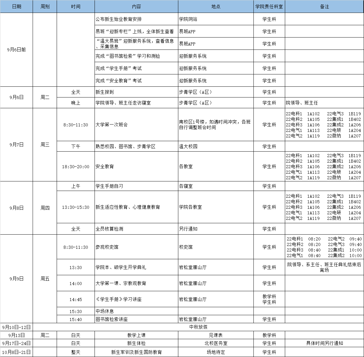 欧美无码 2022级新生始业教育安排表
