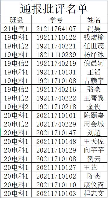 根据学校排查、学院学工办核实,有以下同学没有遵守温州市和我校疫情防控要求:核酸检测间隔时长超72小时。根据《欧美无码 新冠肺炎疫情防控期间学生纪律处分暂行规定》,结合学院实际,给予以下同学全院通报批评。