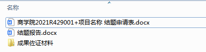 1、结题材料文件夹以“学院名称+项目编号+项目名称”规范重命名(例如“商学院2021R429001+项目名称”,项目名称请与验收汇总表保持一致,不得变更),内含①结题申请表(附件1):电子版(WORD版本),其中需师生签字、学院盖章的页面请完成签字盖章后,将该页面扫描成图片插入表格相应位置,调整好格式与大小,表格整体需美观、协调。验收栏中专家组验收意见请学院相关负责人过目、填写即可;②结题报告;③成果佐证材料文件夹。(注意:今年增加结题报告和成果佐证材料等验收内容,务必认真、保质完成)