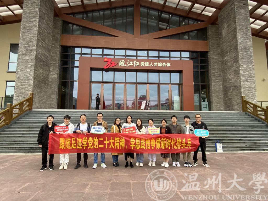 随后,师生党员一行赴“瓯江红”党建人才综合体参观学习。其中,全新的数字化沉浸式体验,让大家以新奇独特的方式再一次回顾了中国共产党波澜壮阔的百年光辉历程,领略了我党百年来的丰功伟绩。