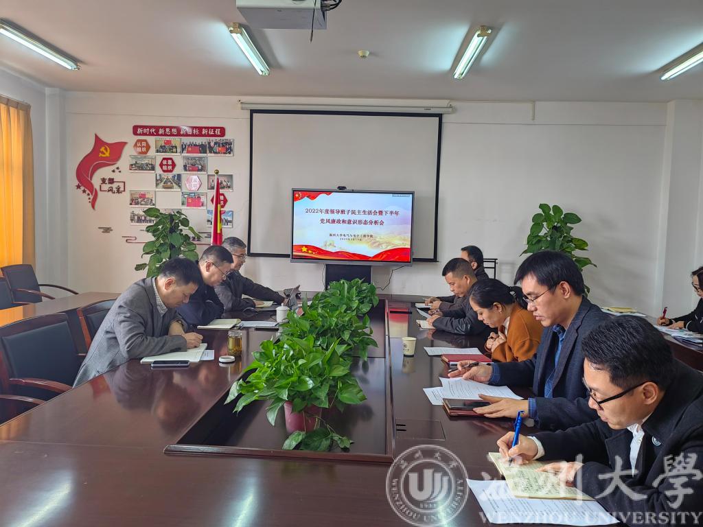 按照学校党委工作部署,2月19日下午,欧美无码 召开2022年度领导班子民主生活会暨下半年党风廉政建设分析会和意识形态分析会。学校党委委员、组织部部部长郑信军全程参会指导,学院党政领导班子出席会议,相关工作负责人列席会议,会议由学院党委书记李方强主持。