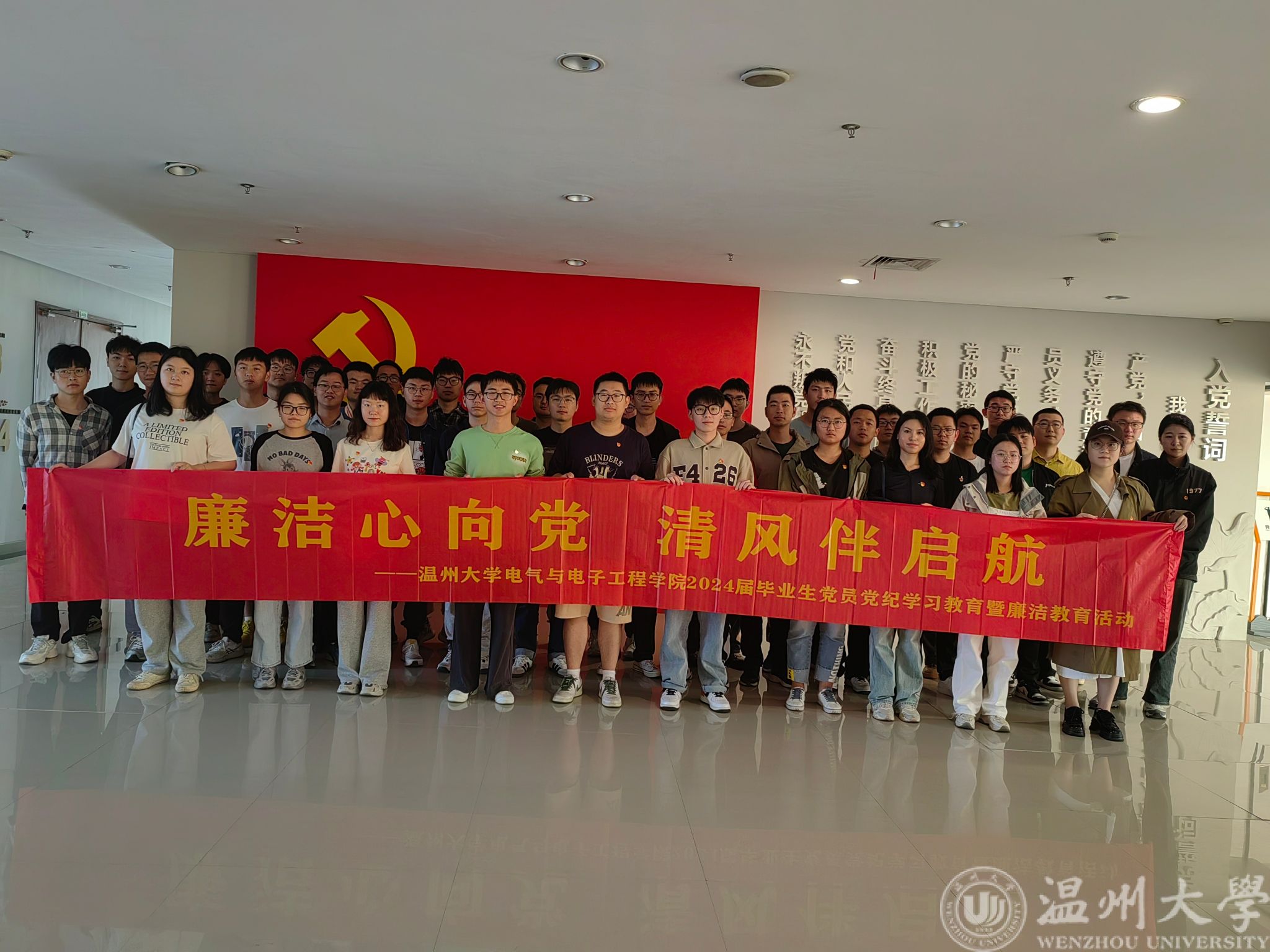 在毕业生们即将踏上人生新的征程之际,5月10日下午,欧美无码 党委组织毕业生党员赴温州市瓯海区廉政教育基地开展毕业生党员党纪学习教育暨廉洁教育主题党日活动,旨在引导青年学生坚定理想信念,增强廉洁意识,扎实走好迈向社会的第一步。