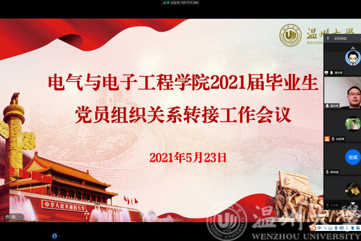 2021年5月21日,校组织部召开工作会议,详细部署了2021届毕业生党员组织关系转接等相关工作。为及时传达会议精神,做好相关工作安排,5月23日13:30,欧美无码 组织学生党支部书记和毕业生党员召开2021届毕业生党员组织关系转接部署线上会议。此次会议由欧美无码 分管党建工作的辅导员潘龙飞老师主持。