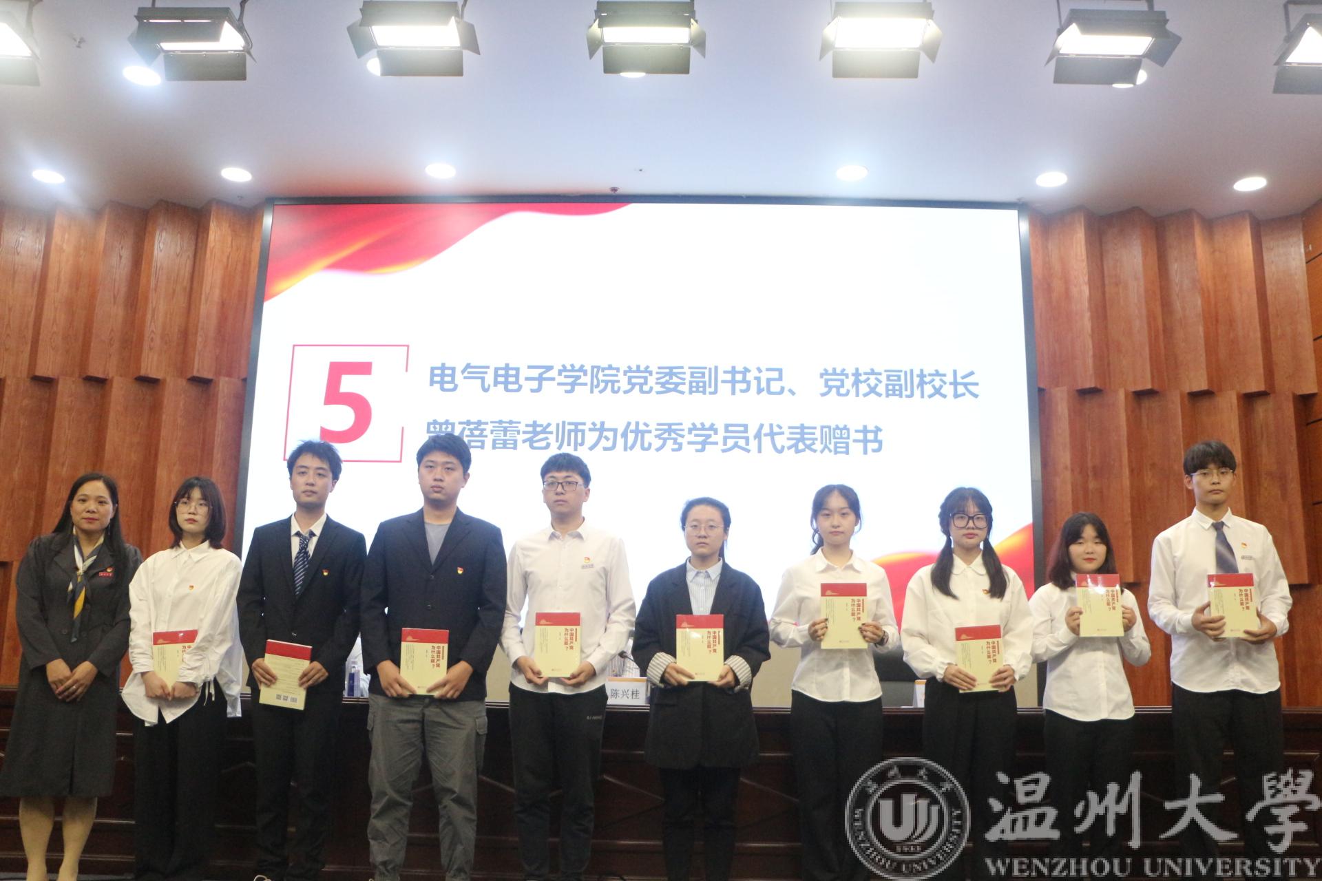 最后,电气电子学院党委副书记曾蓓蕾老师为优秀学员代表赠送纪念书籍《中国共产为什么能》,并对优秀学员给予了鼓励。