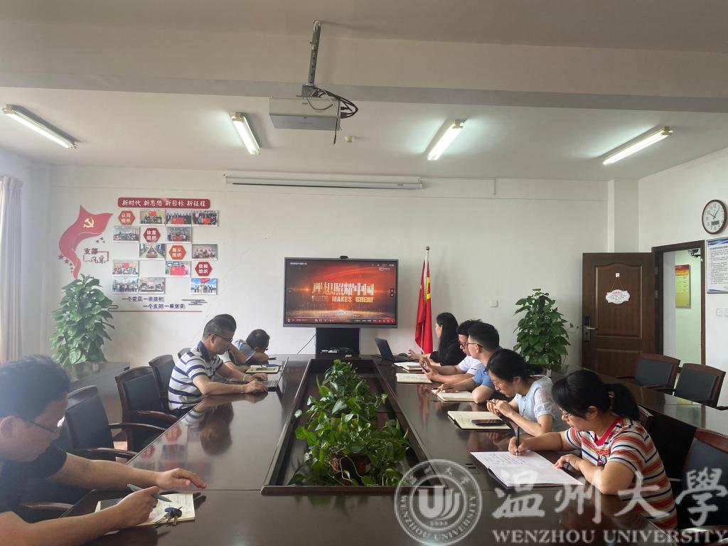 会议主要分为三项议程。第一项议程,由行政教工党支部书记曾蓓蕾总结本月支部党史学习等相关工作。曾书记结合前期支部工作、党史学习交流和解难题办实事开展等情况,综合向与会党员同志作了汇报,并指出“‘学业困难帮扶工程’是本支部解难题、办实事的特色活动项目,希望各位党员同志及时对接学业困难学生,做好引导和帮扶”。会议第二项议程,观看《理想照耀中国》。该剧是由广电总局策划组织制作的庆祝中国共产党成立100周年主题作品,刻画了李大钊、蔡和森、钱学森、焦裕禄、孔繁森等一批共产党人的形象,通过这些依理想而活、靠理想而行的一群人的故事,探讨理想在当下是否仍具有意义。此次主题党日活动观看的是《理想照耀中国》第一集:真理的味道,讲述的是早期共产党员陈望道翻译《共产党宣言》,探索中国革命道路的事迹。