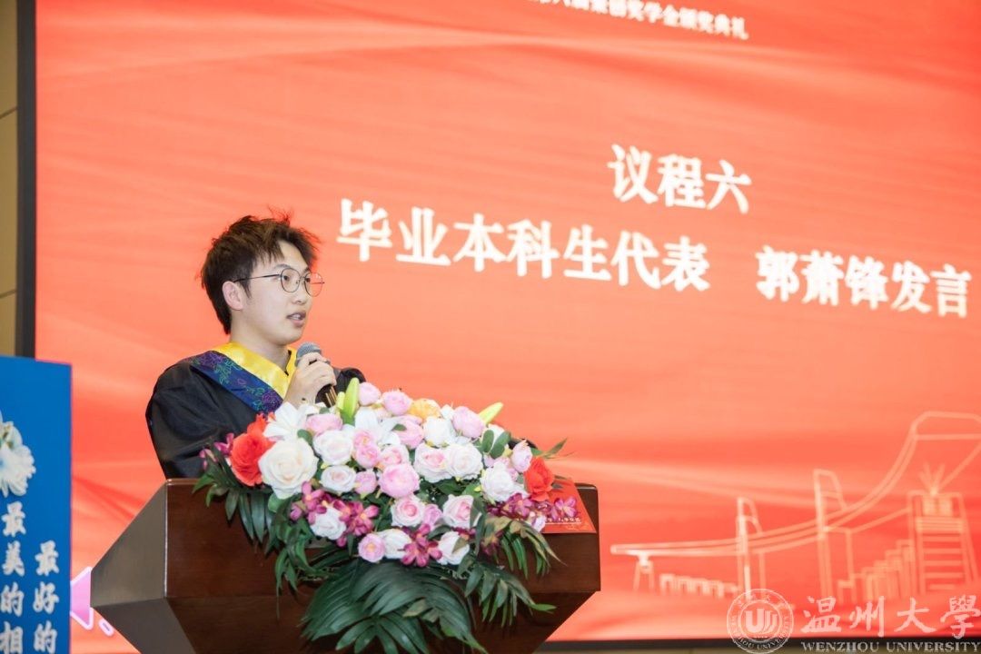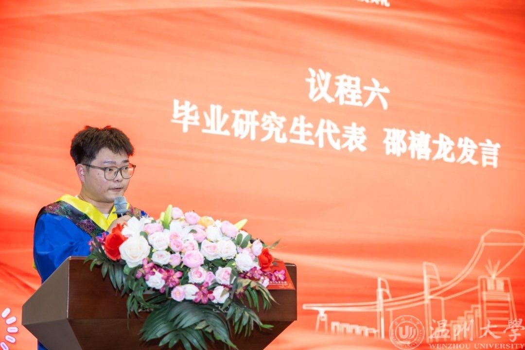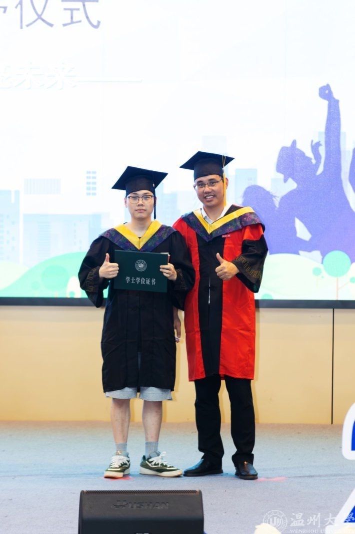 省、校优毕业生表彰环节气氛热烈。校优毕业生代表金智豪、徐迪飞等63名同学,以及省优毕业生胡业俊、应利波等14名同学依次登台,从院领导手中领过荣誉证书。掌声中,一张张年轻的面庞写满对过往的珍视与未来的期许。