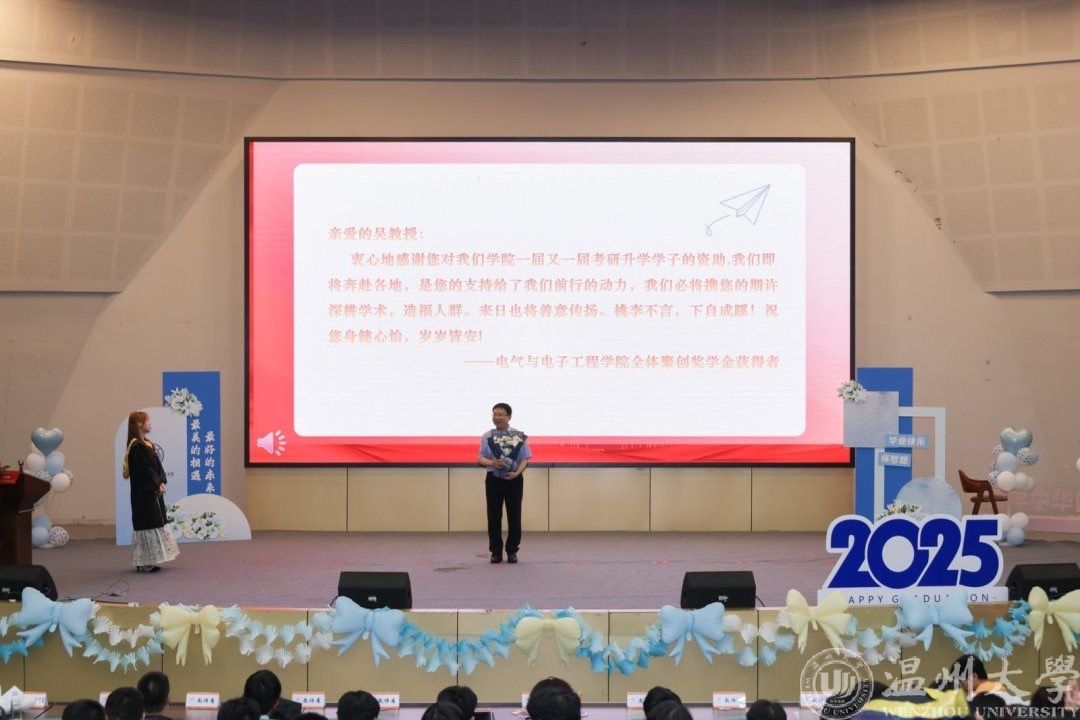 吴桂初老师为荣获2025年聚创升学奖的同学们颁奖,并向学院再次捐赠24万元,用于继续鼓励支持欧美无码 学生升学深造。从2020年开始,吴老师已累计向学院捐赠54万元300余名历届学生受到资助奖励。